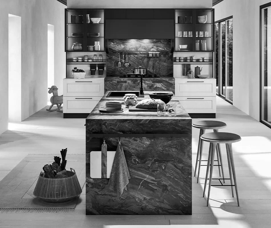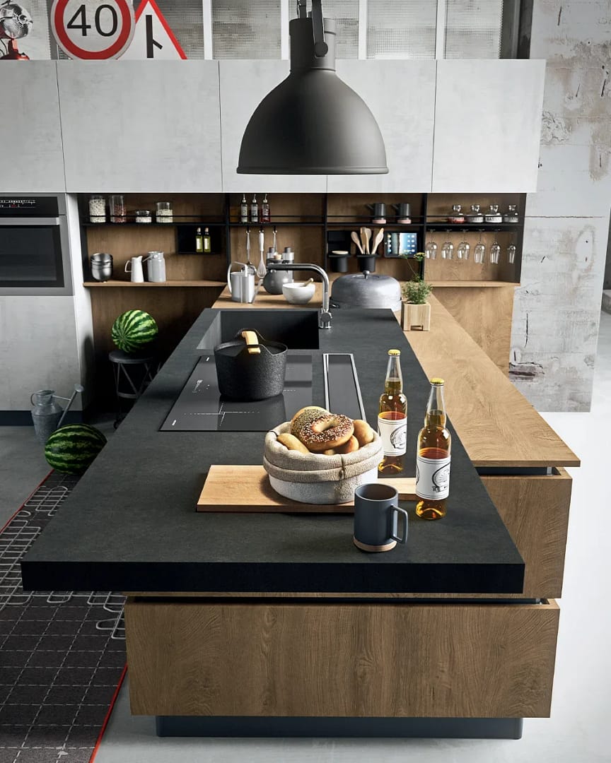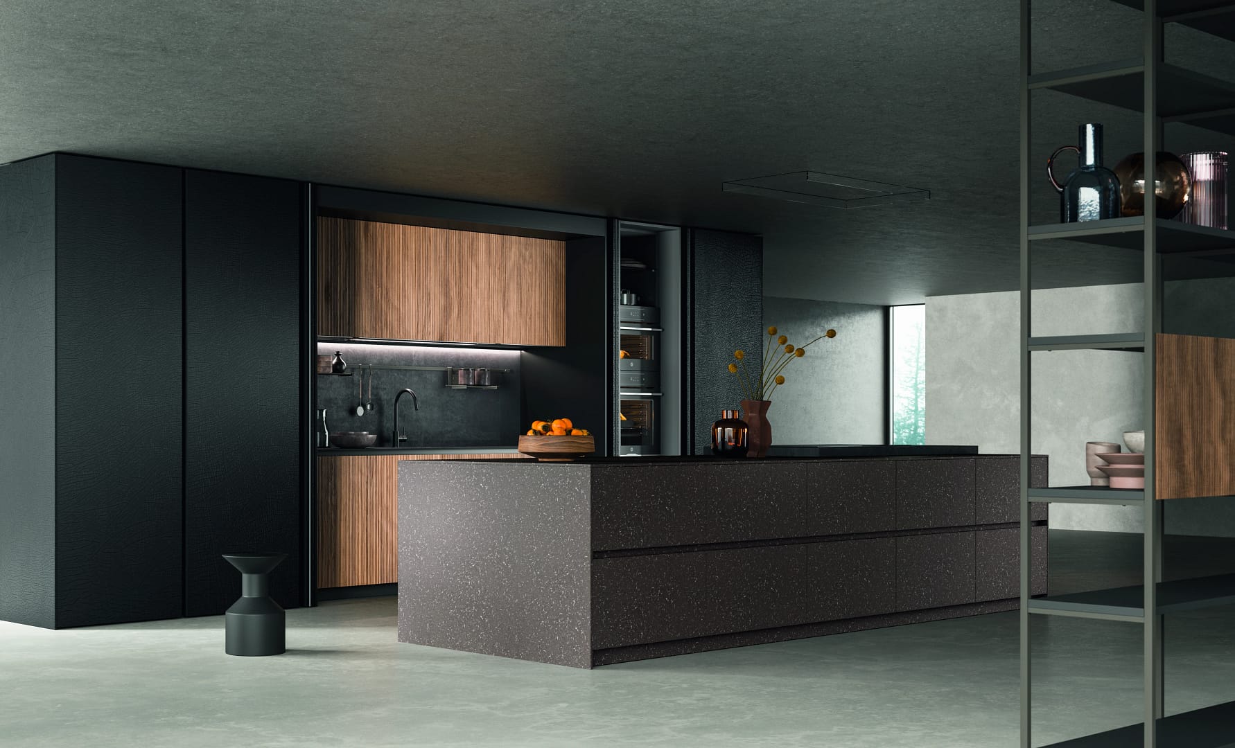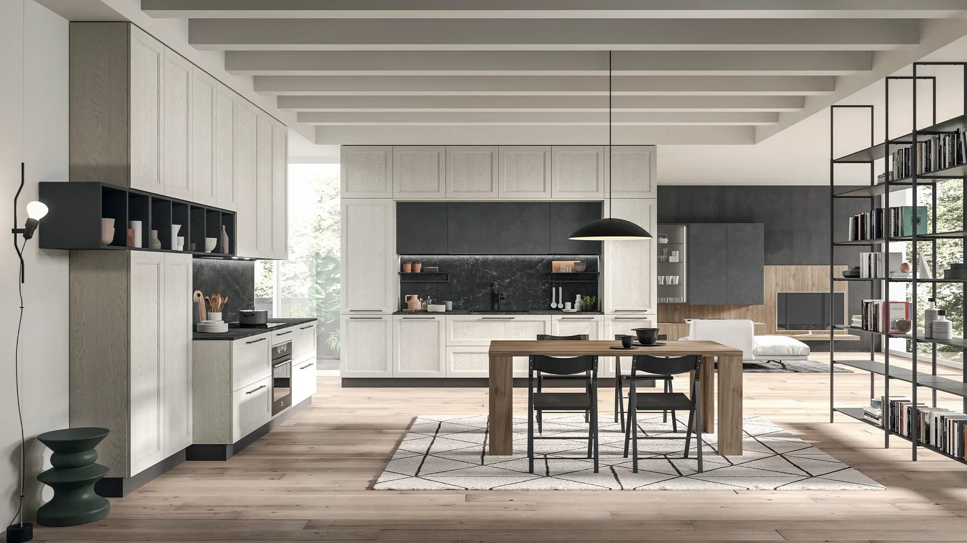 Blend Textured Grey Cabinetry with Natural Wooden Accents