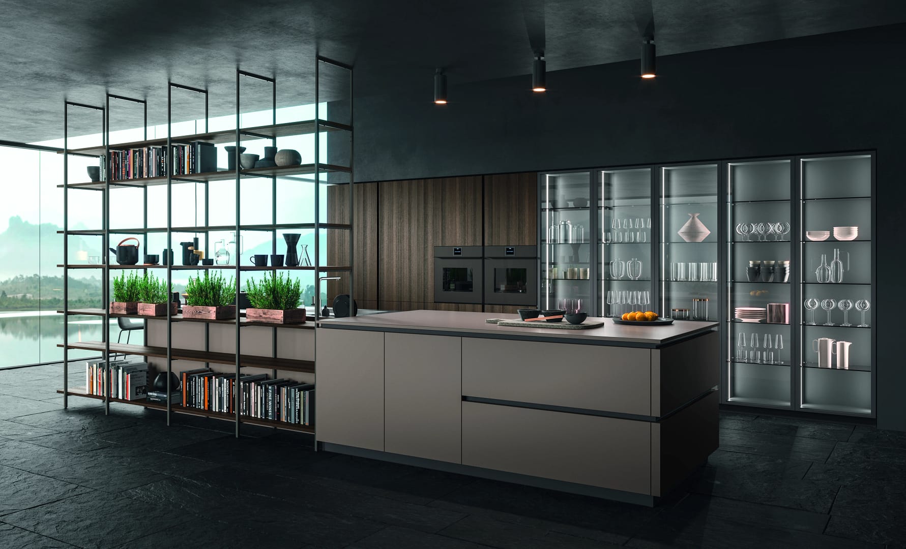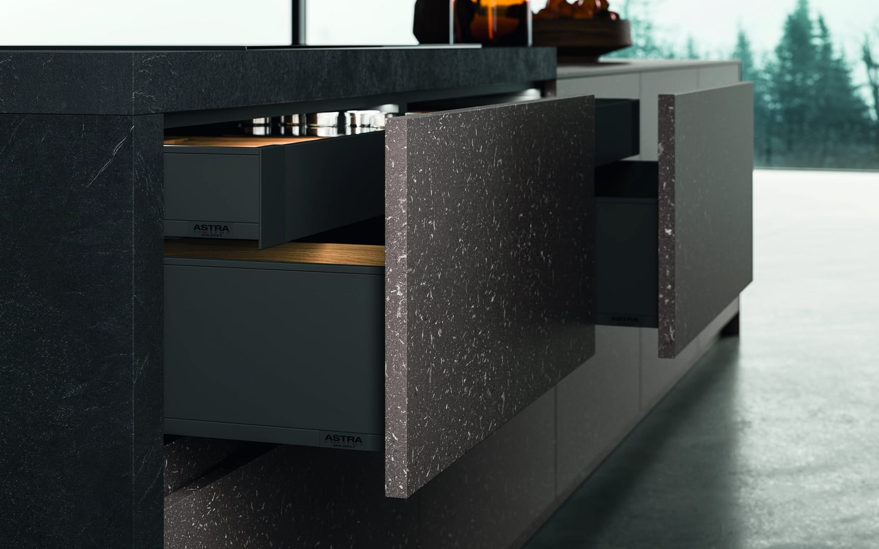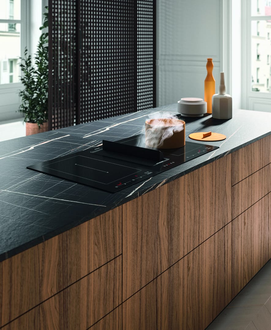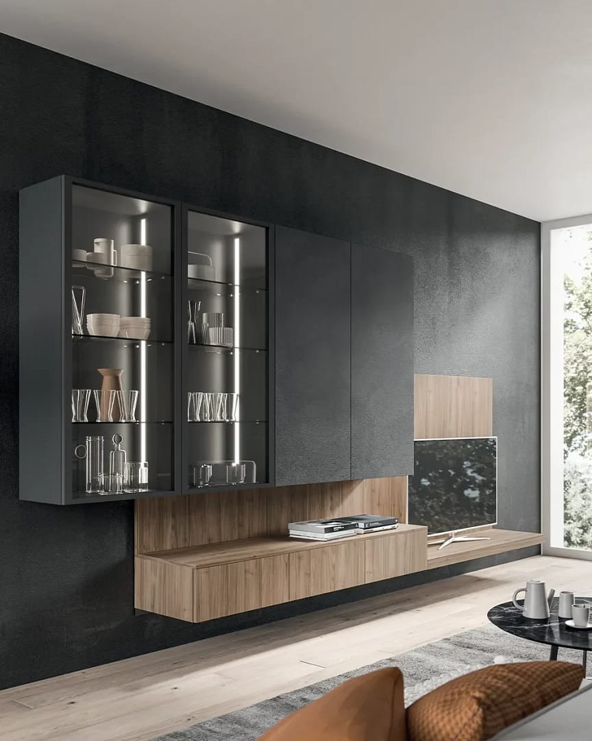 Blend Textured Grey Cabinetry with Natural Wooden Accents