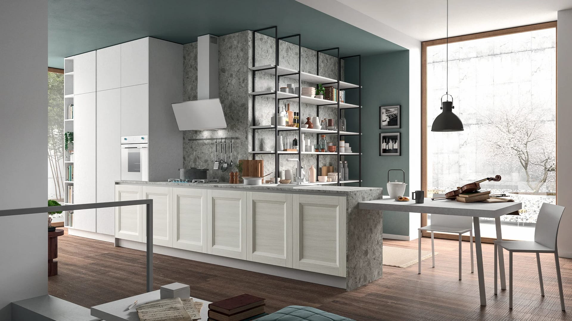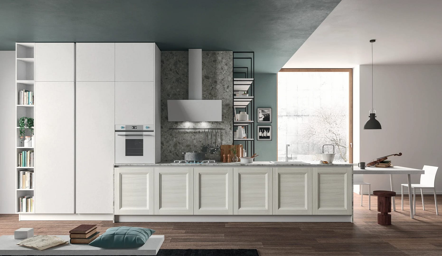 The Square Elegance - White Shaker Kitchen with Open Shelving